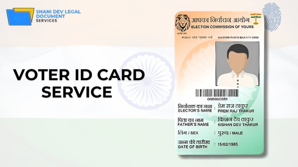 Shani Dev Legal Document Services provides quick and easy Voter ID Card services to help you with all your needs. Whether you are applying for a new Voter ID, updating details like your name or address, or correcting any mistakes, we make the process simple and hassle-free. Our team understands how important a Voter ID is for voting and as proof of identity, so we take care of everything for you. From filling out forms to submitting documents, we ensure everything is done correctly and on time. You won’t need to worry about long lines or confusing paperwork – we handle it all. We even offer doorstep services, so you can complete the process from the comfort of your home. Our goal is to save you time and effort by providing fast and reliable service. At Shani Dev Legal Document Services, we focus on your convenience and make sure your Voter ID Card is processed smoothly and without delay. Whether you’re getting a Voter ID for the first time or updating your current one, contact us today and let us help you with an easy and efficient solution!